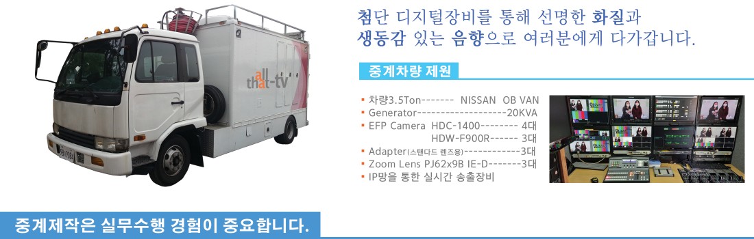 풍부한 경험과 노하우를 갖춘 제작진으로 구성, 다양하고 생생한 고품질의 중계 프로그램을 제작하기 위해 최선의 노력을 다하고 있습니다.